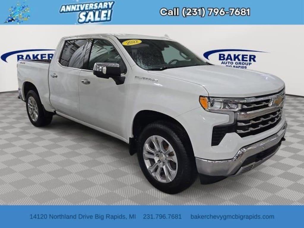 New Price! Summit White 2022 Chevrolet Silverado 1500 LTZ 4WD 10-Speed Automatic EcoTec3 5.3L V8 LOCAL TRADE, NON SMOKER, DETAILED, OIL CHANGE, APPLE CARPLAY, ANDROID AUTO, 1 OWNER, Silverado 1500 LTZ, EcoTec3 5.3L V8, 10-Speed Automatic, 4WD, Summit White, Jet Black Leather, 10-Way Power Driver Seat w/Lumbar, 10-Way Power Passenger Seat Adjuster w/Lumbar, 12.3 Multicolor Reconfigurable Digital Display, 120-Volt Bed Mounted Power Outlet, 120-Volt Instrument Panel Power Outlet, 2 USB Data Ports, Auto High-beam Headlights, Auto-Dimming Inside Rear-View Mirror, Auto-Locking Rear Differential, Bluetooth® For Phone, Chevrolet Connected Access Capable, Chrome Mirror Caps, Color-Keyed Carpeting Floor Covering, Compass, Deep-Tinted Glass, Driver Memory, Dual Rear USB Ports (Charge Only), Electric Rear-Window Defogger, Electrical Steering Column Lock, Electronic Cruise Control, Floor Mounted Center Console, Front Frame-Mounted Black Recovery Hooks, Front LED Fog Lamps, Front Rainsensing Wipers, Front Rubberized Vinyl Floor Mats, HD Surround Vision, Heated Driver & Front Outboard Passenger Seats, Heated Steering Wheel, High Capacity Suspension Package, Hitch Guidance, Hitch Guidance w/Hitch View, Integrated Trailer Brake Controller, Keyless Open & Start, Leather Wrapped Steering Wheel, LED Cargo Area Lighting, LTZ Convenience Package, LTZ Plus Package, OnStar & Chevrolet Connected Services Capable, Outside Heated Power-Adjustable Mirrors, Perimeter Lighting, Power Front Passenger Windows w/Express Up/Down, Power Front Windows w/Driver Express Up/Down, Power passenger seat, Power Rear Windows w/Express Down, Power Tailgate, Power Tilt & Telescoping Steering Column, Preferred Equipment Group 1LZ, Premium Bose 7-Speaker Sound System, Rear Cross Traffic Alert-Braking, Rear Pedestrian Detection, Rear Rubberized-Vinyl Floor Mats, Rear Wheelhouse Liners, Remote Vehicle Starter System, Safety Alert Seat, Safety Package, SiriusXM w/360L, Standard Tailgate, Steering Wheel Audio Controls, Theft Deterrent System (Unauthorized Entry), Trailer Camera Provisions, Trailer Side Blind Zone Alert, Trailering App, Trailering Package, Ultrasonic Front & Rear Park Assist, Up-Level Rear Seat w/Storage Package, Ventilated Driver & Front Passenger Seats, Wheels: 20 x 9 Sterling Silver Painted Aluminum, Wi-Fi Hot Spot Capable, Wireless Charging, Wireless Phone Projection.
