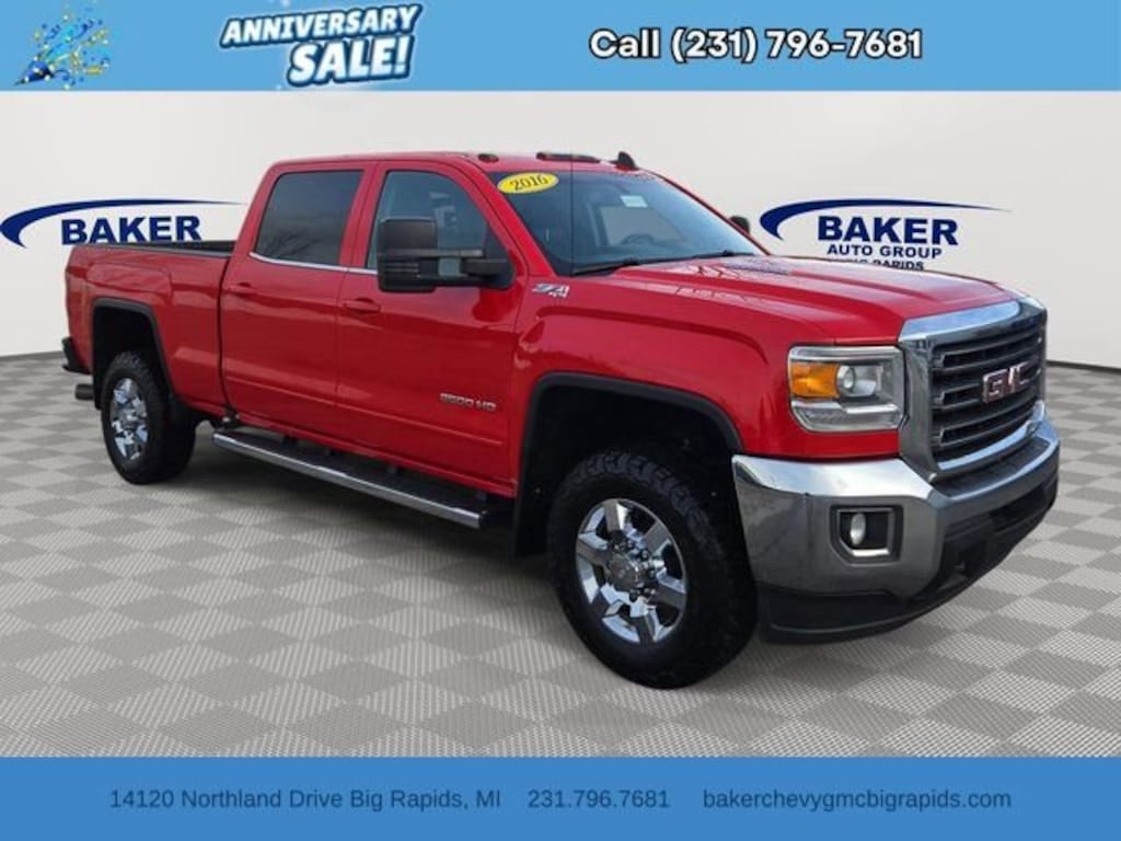 New Price! Cardinal Red 2016 GMC Sierra 2500HD SLE 4WD Allison 1000 6-Speed Automatic Duramax 6.6L V8 Turbodiesel LOCAL TRADE, NON SMOKER, DETAILED, OIL CHANGE, NO ACCIDENT AUTO CHECK, DIESEL ENGINE, Duramax 6.6L V8 Turbodiesel, Allison 1000 6-Speed Automatic, 4WD, Cardinal Red, Dark Ash/Jet Black Cloth, CD player, Exterior Parking Camera Rear, Heavy-Duty Handling/Trailering Suspension Package, Trailer Brake Controller, Trailering Equipment.