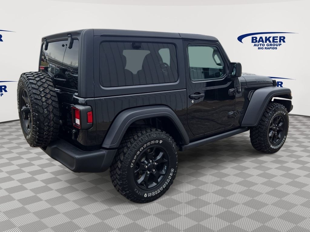 Wrangler Willys, 2D Sport Utility, 3.6L V6 24V VVT, 4WD, Black Clearcoat, 4-Wheel Drive Swing Gate Decal, 97 MPH Vehicle Max Speed Calibration, Air Conditioning, Anti-Lock 4-Wheel Disc HD Brakes, Anti-Spin Differential Rear Axle, Automatic Headlamps, Black Grille, Black Trail Rated Badge, Deep Tint Sunscreen Windows, Front 1-Touch Down Power Windows, Front LED Fog Lamps, Leather Wrapped Steering Wheel, LED Headlamp & Fog Lamp Group, LED Reflector Headlamps, Matte Black Jeep Badge, MOPAR All-Weather Floor Mats, Power Heated Mirrors, Quick Order Package 24W Willys, Remote Keyless Entry, Security Alarm, Speed Sensitive Power Locks, Sun Visors w/Illuminated Vanity Mirrors, Wheels: 17" x 7.5" Moab Black Aluminum, Willys, Willys Hood Decal, Wrangler Decal.