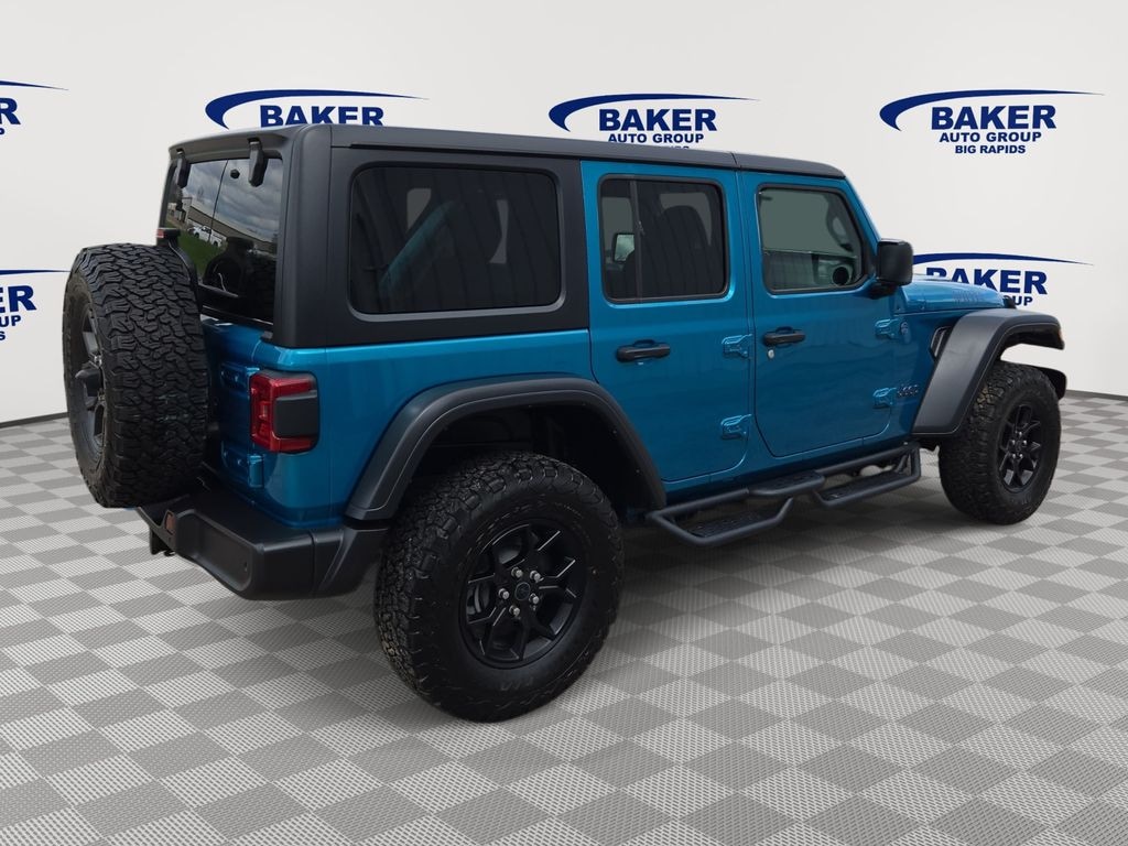 2.0L I4 DOHC, 2-Door Passive Entry, Front Door Locks, 4.10 Rear Axle Ratio, 4xe 4-Wheel Drive Swing Gate Decal, 7 & 4 Pin Wiring Harness, 97 MPH Vehicle Max Speed Calibration, Alpine Premium Audio System, Auto High Beam Headlamp Control, Auxiliary Switches, Black Grille, Blind Spot & Cross Path Detection, Convenience Group, Conventional Differential Front Axle, E-Locker Rear Axle, Emergency/Assistance Call, EV/PHEV Vehicle To Load, Front LED Fog Lamps, Heated Front Seats, Heated Steering Wheel, LED Premium Reflector Headlamps, LED Taillamps, Molded in Color Rubicon Highline Flare, MOPAR All-Weather Floor Mats, Off-Road Plus Mode, ParkSense Rear Park Assist System, Quick Order Package 29W Willys, Remote Start System, Safety Group, Technology Group, Universal Garage Door Opener, Wheels: 17" x 7.5" Painted Black, Willy's Suspension, Willys, Willys 4xe Hood Decal.