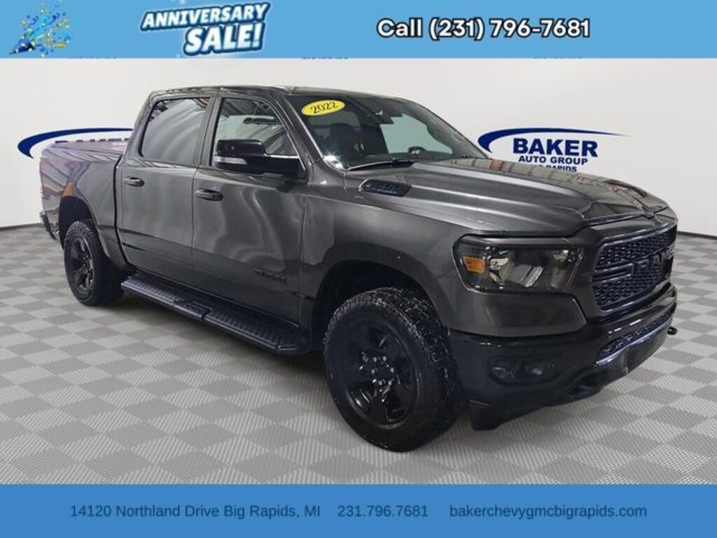 Granite Crystal Metallic Clearcoat 2022 Ram 1500 Big Horn/Lone Star 4WD 8-Speed Automatic HEMI 5.7L V8 Multi Displacement VVT LOCAL TRADE, NON SMOKER, DETAILED, OIL CHANGE, APPLE CARPLAY, ANDROID AUTO, 1 OWNER, NO ACCIDENT AUTO CHECK, 1500 Big Horn/Lone Star, 4D Crew Cab, HEMI 5.7L V8 Multi Displacement VVT, 4WD, Granite Crystal Metallic Clearcoat, 115V Auxiliary Power Outlet, 115V Auxiliary Rear Power Outlet, 2nd Row In Floor Storage Bins, 3 Rear Seat Head Restraints, 4 Way Front Headrests, 400W Inverter, 4G LTE Wi-Fi Hot Spot, 8.4 Touchscreen Display, Accent Color Premium Power Mirrors, Air Conditioning ATC w/Dual Zone Control, All Plant-Installed Decals, Apple CarPlay, Auto-Dimming Exterior Driver Mirror, Auto-Dimming Rear-View Mirror, Back Country I/P Badge, Back Country Package, Big Horn Badge, Big Horn Level 2 Equipment Group, Black Exterior Mirrors, Black Exterior Truck Badging, Black Headlamp Bezels, Black Painted Exterior Mirrors Caps, Black Premium Power Mirrors, Bluetooth Handsfree Phone & Audio, Bucket Seats, Center Console Parts Module, Class IV Receiver Hitch, Cloth/Vinyl Bucket Seats, Cluster 7.0 TFT Color Display, Connectivity - US/Canada, Convex Wide-Angle Mirror Insert, Delete LED Lamp - Floor Console Bin, Dual Exhaust w/Black Tips, E-Locker Rear Axle, Exterior Mirrors Courtesy Lamps, Exterior Mirrors w/Heating Element, Exterior Mirrors w/Supplemental Signals, For Details, Visit DriveUconnect.com, Front Extra HD Shock Absorbers, Front Seat Back Map Pockets, Full Length Floor Console, Global Telematics Box Module (TBM), Glove Box Lamp, Google Android Auto, GPS Antenna Input, GPS Navigation, Grille Surround 1 Body Color Texture 1 Black, Heated Front Seats, Heated Steering Wheel, Hill Descent Control, Integrated Center Stack Radio, Manual Adjust 4-Way Front Passenger Seat, Media Hub w/2 Charge Only USBs, MOPAR 4 Adjustable Cargo Tie-Down Hooks, Mopar Black Tubular Side Steps, MOPAR Deployable Bed Step, MOPAR Front & Rear Rubber Floor Mats, MOPAR Spray In Bedliner, Off Road Decals, Off-Road Information Pages, Painted Front Bumper, Painted Rear Bumper, ParkSense Front/Rear Park Assist w/Stop, Pick-Up Box Lighting, Power 2-Way Driver Lumbar Adjust, Power 8-Way Driver Seat, Power Adjustable Pedals, Power-Folding Mirrors, Quick Order Package 27Z Big Horn, Radio: Uconnect 5 W w/8.4 Display, Raised Ride Height, RAM Grille Badge - Black, Rear 60/40 Folding Seat, Rear Dome w/On/Off Switch Lamp, Rear Extra HD Shock Absorbers, Rear Power Sliding Window, Rear Window Defroster, Remote Start System, Security Alarm, SiriusXM Radio Service, SiriusXM Satellite Radio, Sun Visors w/Illuminated Vanity Mirrors, Tow Hooks, Tri-Fold Tonneau Cover, Universal Garage Door Opener, USB Host Flip, Wheels: 18 x 8.0 Black Painted Aluminum.